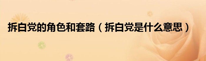 今天菲菲来为大家解答以上的问题。拆白党的角色和套路,拆白党是什么意思相信很多小伙伴还不知道,现在让我们一起来看看吧!