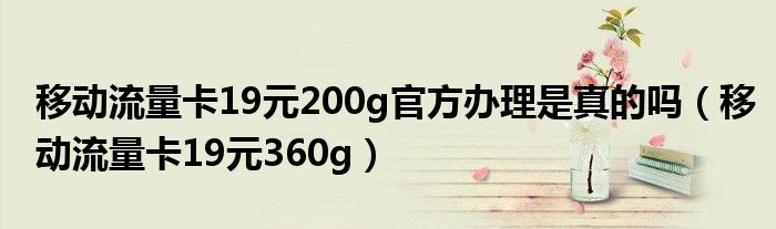移动流量卡19元200g官方办理是真的吗(移动流量卡19元360g),这个怎么操作啊?求快教我!