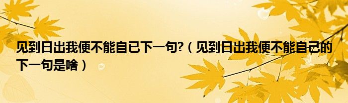 今天菲菲来为大家解答以上的问题。见到日出我便不能自已下一句?,见到日出我便不能自己的下一句是啥相信很多小伙伴还不知道,现在让我们一起来看看吧!