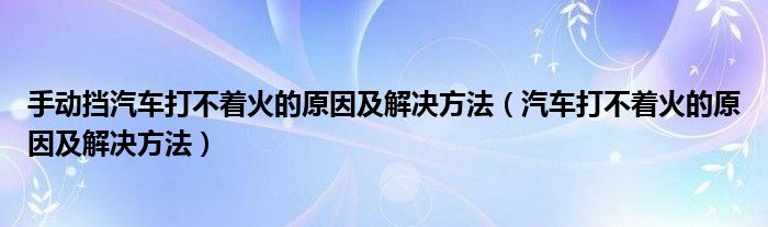 今天菲菲来为大家解答以上的问题。手动挡汽车打不着火的原因及解决方法,汽车打不着火的原因及解决方法相信很多小伙伴还不知道,现在让我们一起来看看吧!
