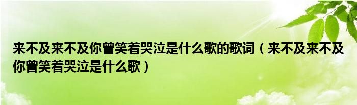 今天菲菲来为大家解答以上的问题。来不及来不及你曾笑着哭泣是什么歌的歌词,来不及来不及你曾笑着哭泣是什么歌相信很多小伙伴还不知道,现在让我们一起来看看吧!
