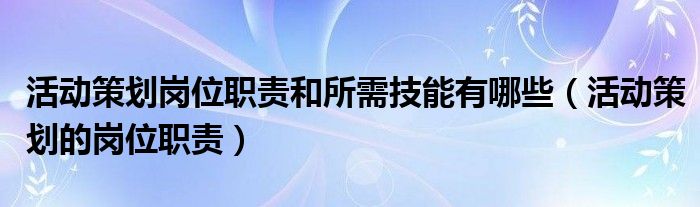 今天菲菲来为大家解答以上的问题。活动策划岗位职责和所需技能有哪些,活动策划的岗位职责相信很多小伙伴还不知道,现在让我们一起来看看吧!