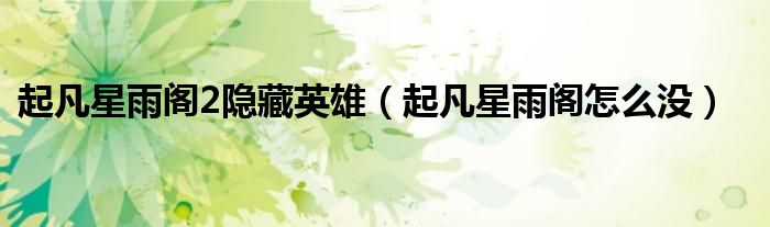 起凡星雨阁2隐藏英雄(起凡星雨阁怎么没),快急死了,求正确答案快出现!