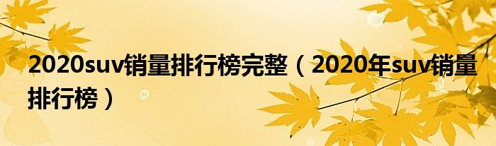 今天菲菲来为大家解答以上的问题。2020suv销量排行榜完整,2020年suv销量排行榜相信很多小伙伴还不知道,现在让我们一起来看看吧!