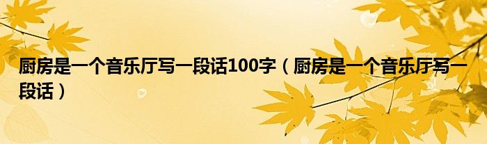今天菲菲来为大家解答以上的问题。厨房是一个音乐厅写一段话100字,厨房是一个音乐厅写一段话相信很多小伙伴还不知道,现在让我们一起来看看吧!