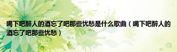 今天菲菲来为大家解答以上的问题。喝下吧醉人的酒忘了吧那些忧愁是什么歌曲,喝下吧醉人的酒忘了吧那些忧愁相信很多小伙伴还不知道,现在让我们一起来看看吧!