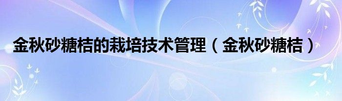 今天菲菲来为大家解答以上的问题。金秋砂糖桔的栽培技术管理,金秋砂糖桔相信很多小伙伴还不知道,现在让我们一起来看看吧!