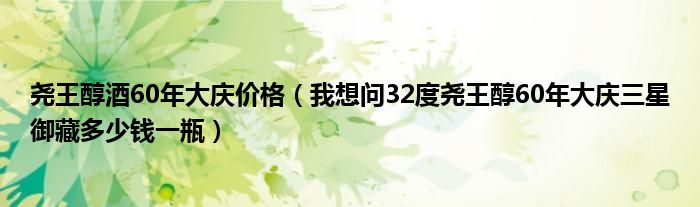 尧王醇酒60年大庆价格(我想问32度尧王醇60年大庆三星御藏多少钱一瓶),有没有人理理小透明?急需求助!