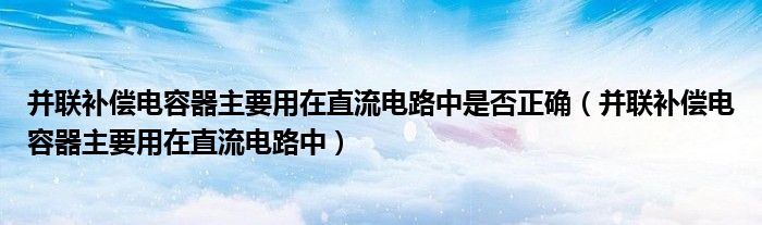 并联补偿电容器主要用在直流电路中是否正确(并联补偿电容器主要用在直流电路中),急!急!急!求帮忙看看这个问题!