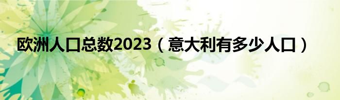 今天菲菲来为大家解答以上的问题。欧洲人口总数2023,意大利有多少人口相信很多小伙伴还不知道,现在让我们一起来看看吧!