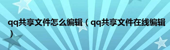qq共享文件怎么编辑(qq共享文件在线编辑),拜谢!求解答这个难题!