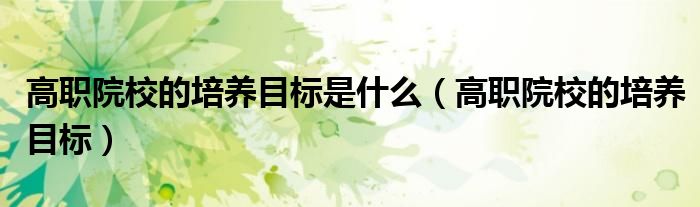 高职院校的培养目标是什么(高职院校的培养目标),急到抓头发,求解答!