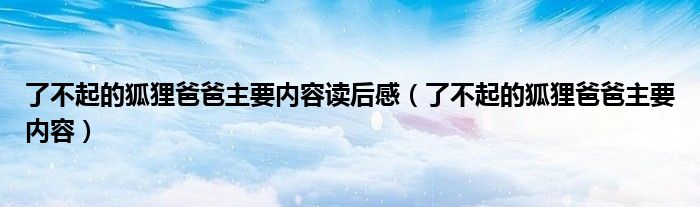 今天菲菲来为大家解答以上的问题。了不起的狐狸爸爸主要内容读后感,了不起的狐狸爸爸主要内容相信很多小伙伴还不知道,现在让我们一起来看看吧!