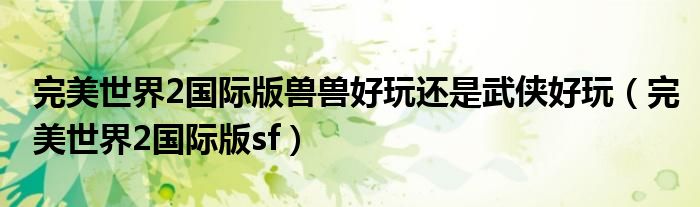 今天菲菲来为大家解答以上的问题。完美世界2国际版兽兽好玩还是武侠好玩,完美世界2国际版sf相信很多小伙伴还不知道,现在让我们一起来看看吧!