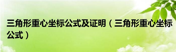 今天菲菲来为大家解答以上的问题。三角形重心坐标公式及证明,三角形重心坐标公式相信很多小伙伴还不知道,现在让我们一起来看看吧!