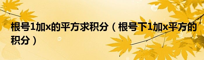 今天菲菲来为大家解答以上的问题。根号1加x的平方求积分,根号下1加x平方的积分相信很多小伙伴还不知道,现在让我们一起来看看吧!