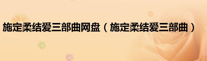 今天菲菲来为大家解答以上的问题。施定柔结爱三部曲网盘,施定柔结爱三部曲相信很多小伙伴还不知道,现在让我们一起来看看吧!