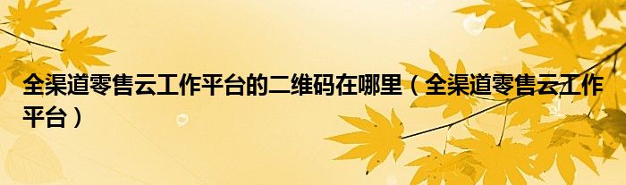 全渠道零售云工作平台的二维码在哪里(全渠道零售云工作平台),求路过的大神指点,急!