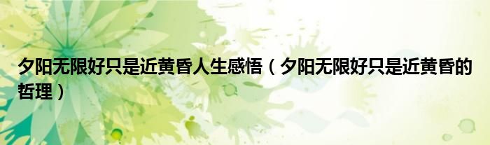 今天菲菲来为大家解答以上的问题。夕阳无限好只是近黄昏人生感悟,夕阳无限好只是近黄昏的哲理相信很多小伙伴还不知道,现在让我们一起来看看吧!