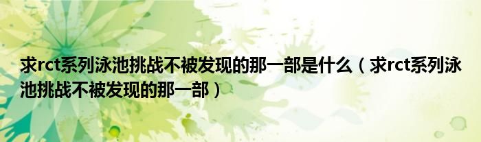 今天菲菲来为大家解答以上的问题。求rct系列泳池挑战不被发现的那一部是什么,求rct系列泳池挑战不被发现的那一部相信很多小伙伴还不知道,现在让我们一起来看看吧!