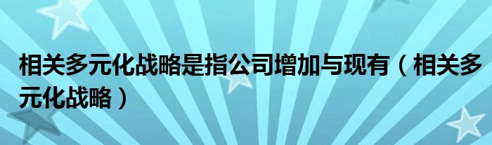 今天菲菲来为大家解答以上的问题。相关多元化战略是指公司增加与现有,相关多元化战略相信很多小伙伴还不知道,现在让我们一起来看看吧!