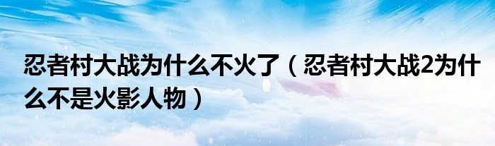 忍者村大战为什么不火了(忍者村大战2为什么不是火影人物)求高手给解答