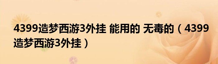 4399造梦西游3外挂 能用的 无毒的(4399造梦西游3外挂),麻烦给回复